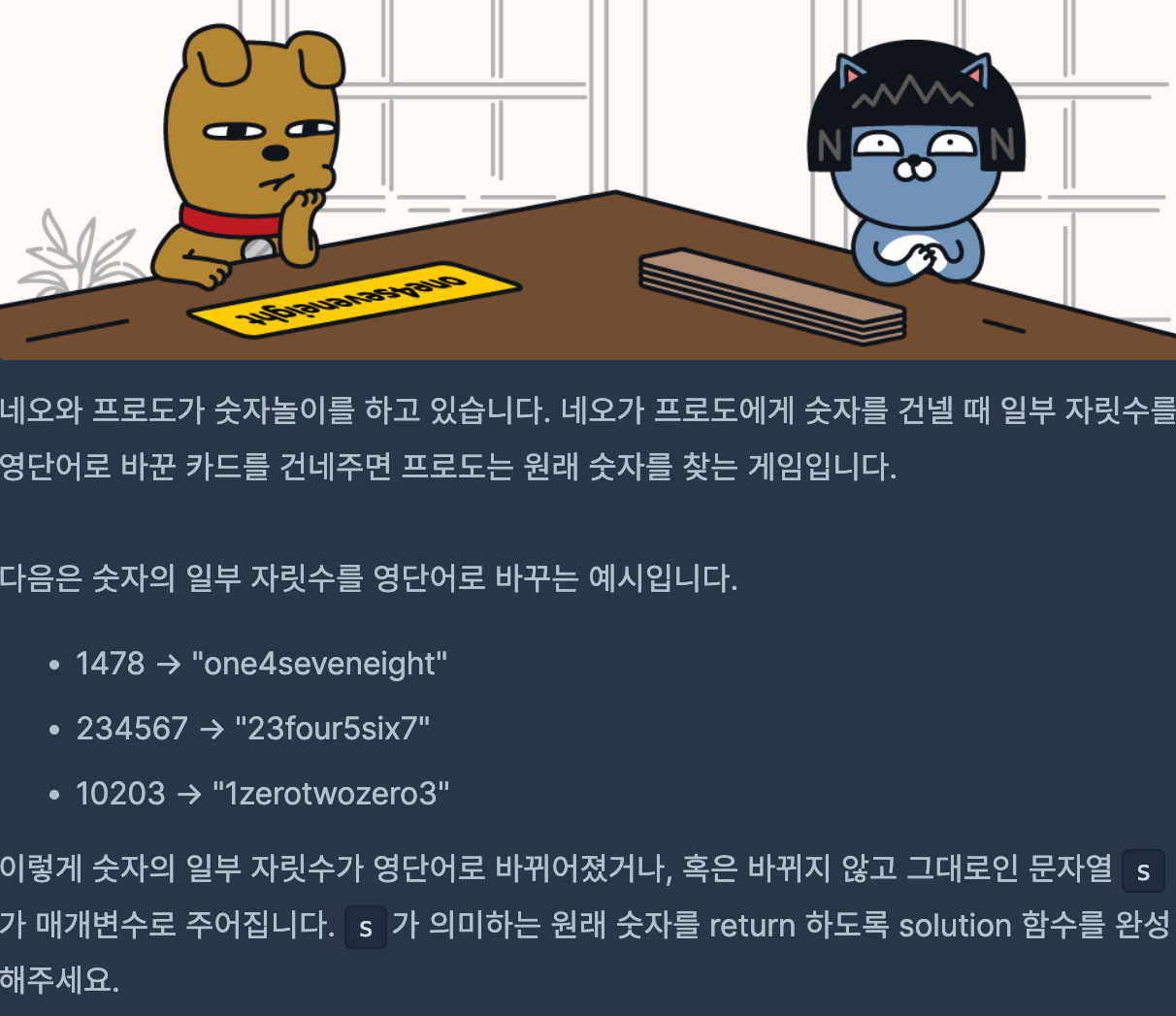 입력 되는 숫자에 문자열이 있다면 해당 문자열이 의미하는 원래 숫자로 변경하여 return