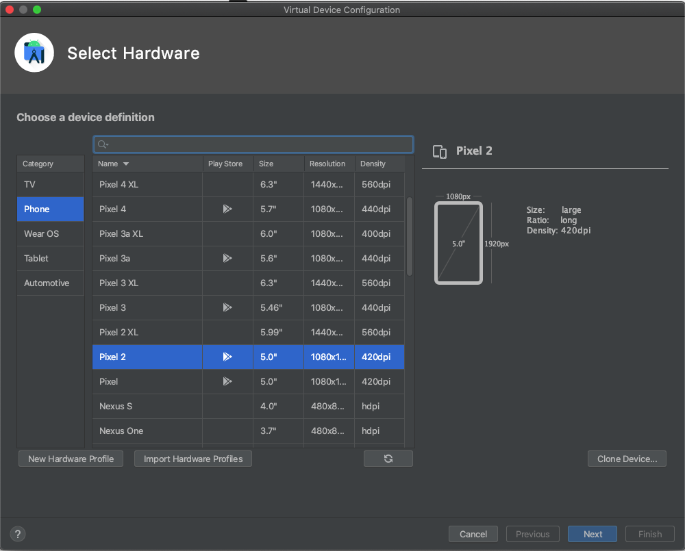 Virtual Device Manager로 들어가면 앞으로 테스트에 사용할 가상 디바이스를 설정할 수 있다