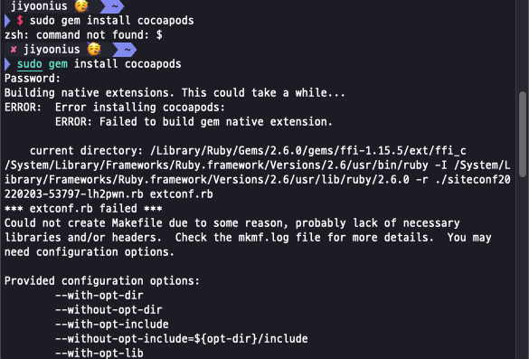 ERROR: Error installing cocoapods: ERROR: Failed to build gem native extension