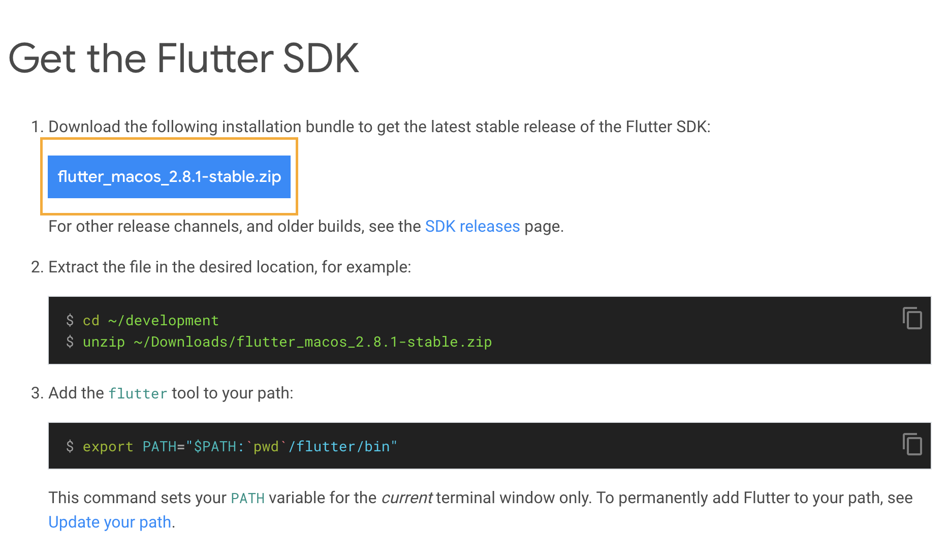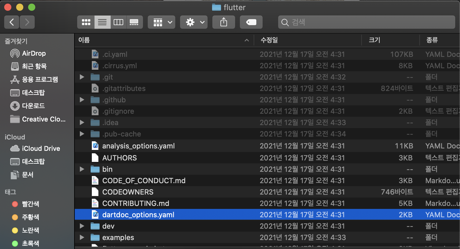 다시 플러터 창으로 돌아와서 맥os버전으로 다운