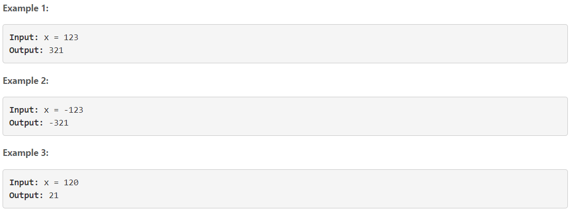 Given a signed 32-bit integer x, return x with its digits reversed. If reversing x causes the value to go outside the signed 32-bit integer range [-231, 231 - 1], then return 0.