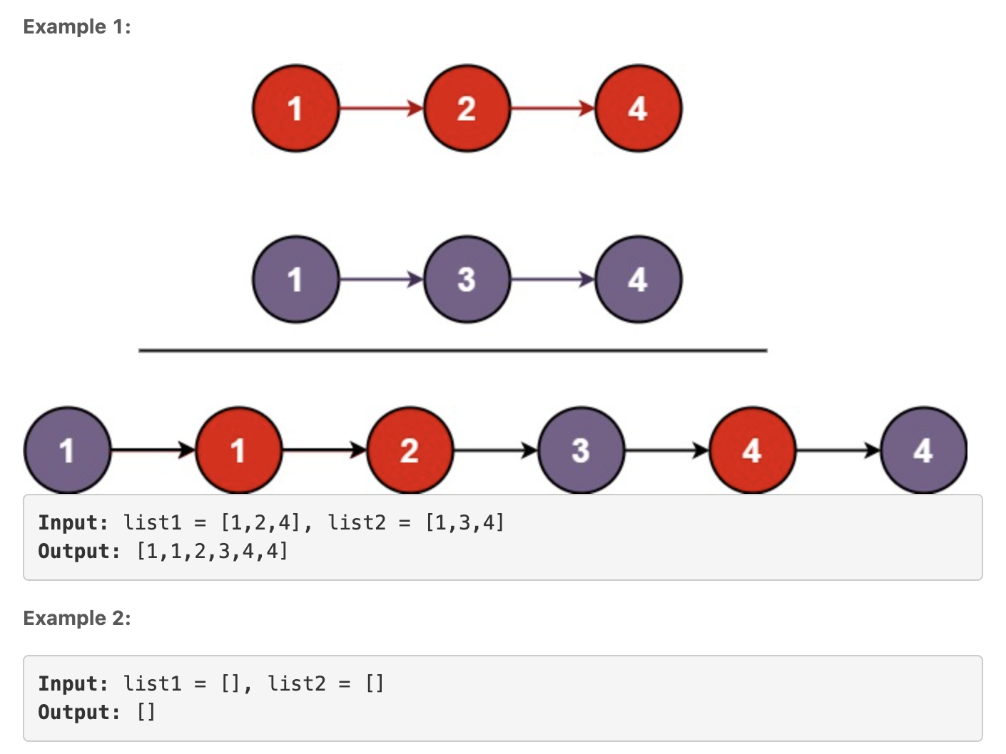 var mergeTwoLists = function(list1, list2) {