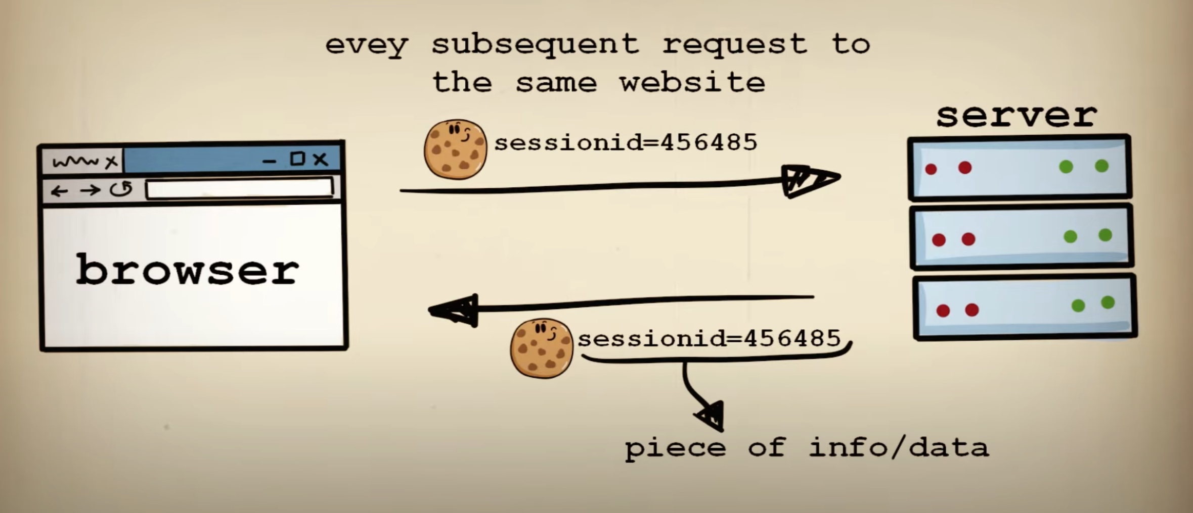 이 후 클라이언트가는 저장된 쿠키를 요청 헤어의 쿠키에 담아보내고, 서버는 이 정보를 바탕으로 요청한 클라이언트를 식별한다.