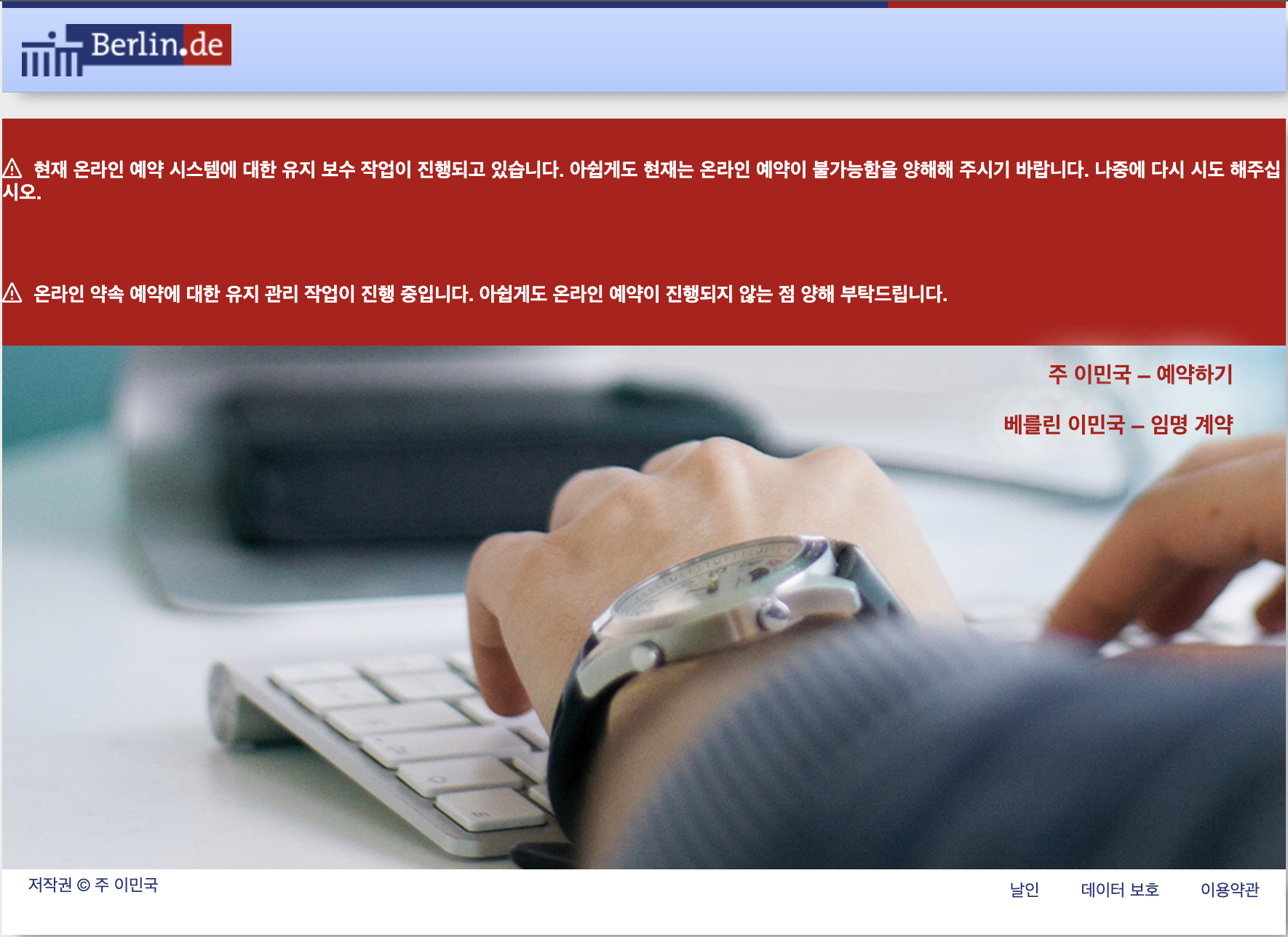 예약과 예약의 나라 독일. 블루카드는 오프라인 예약 없이 온라인으로 서류를 모두 제출하면 예약일자를 지정해서 안내해준다. 구직비자 신청할 때 2달 내내 빈 슬롯 하나 없이 매일 취소표 없나 들락날락 했던걸 생각하면 이렇게 편할 수가 없지만, 이렇게 서류 넣어 놓고 기다리는데 감감 무소식이였다는 사람들의 증언이 너무나 많다.